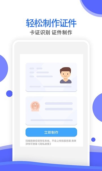 支持身份证识别、银行卡识别、营业执照、名片识别、驾驶证、行驶证等证件扫描识别,生成电子复印件。