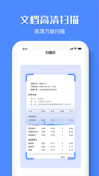 2、支持文档识别,表格、word文档、照片识别等都可以一键识别扫描。