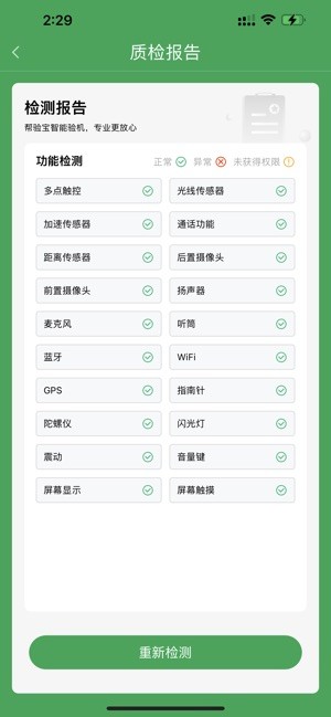 帮验宝app,一款专业的功能检测软件。随时随地一键验机,全方位手机检测,让您对爱机了如指掌。