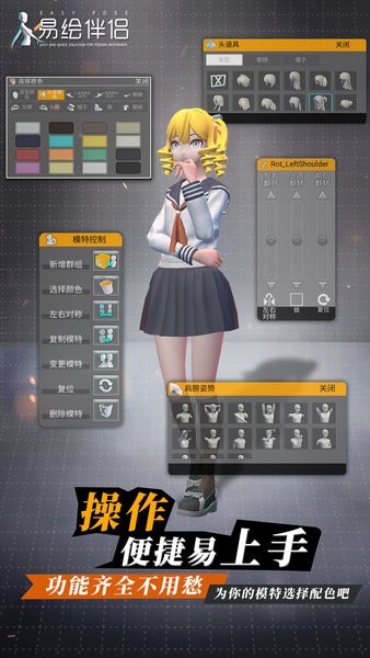 易绘伴侣手机版是经常被用户当成游戏玩的建模软件,非常多的模型可以在软件之中设置,用户还可以将模型设置成为不同的动作,还有丰富的色彩可以为你的模型进行上色和装扮。