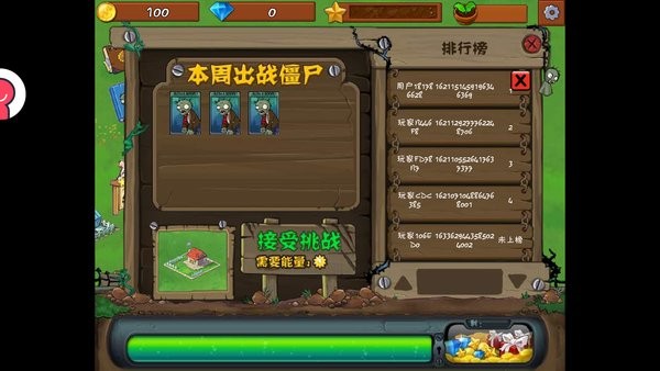需要“僵尸竞技场”。打开竞技场,发现本周出战僵尸,在参加战斗后,开始挑战本周出战僵尸。战斗失败,获得一定量的金币和经验;战斗胜利,获得金币和大量经验,还可以抽奖。