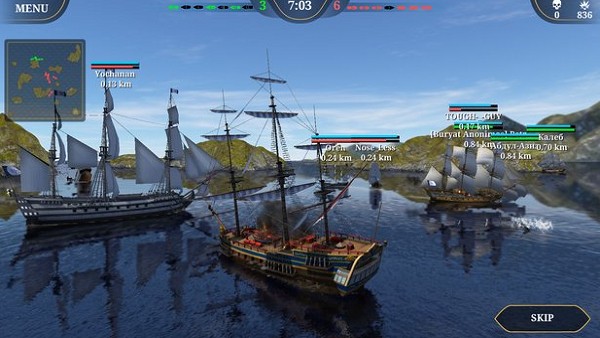 战斗发生在战乱不断的群岛所处的加勒比海。避开对手的齐射,使用海战战术,另外放心大胆地接近敌船。因为游戏中有登船的设定!处理好帆船,它们被命中时会烧坏!