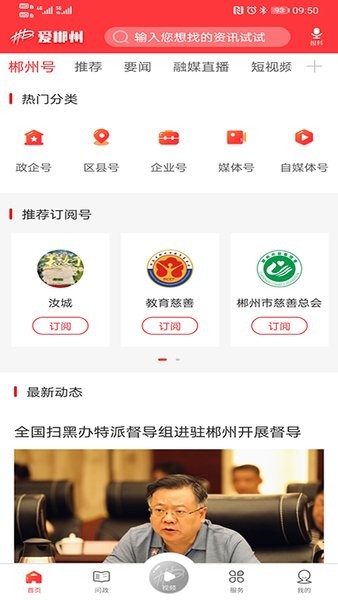 爱郴州客户端为用户带来更多的新闻直播,更多的新鲜新闻都可以在软件之中观看,还有丰富的短视频可以随时进行观看,通过软件关注更多的郴州实时信息,还有许多的生活服务可以找到。