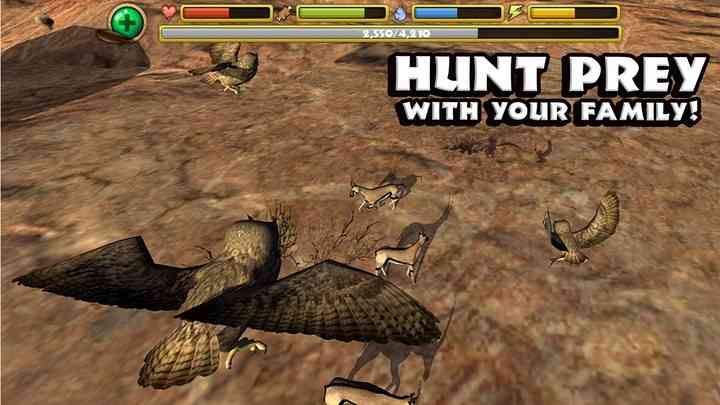 -- 在这个猫头鹰游戏中,为了你的生存,扩大你的猫头鹰家庭并在月光下捕猎你的猎物。在这个夜间鸟类游戏中,与你的巢中偷猫头鹰蛋的之鹰进行战斗。在你的猫头鹰巢中吃食物并带上食物,以获得美丽的猫头鹰幼崽。