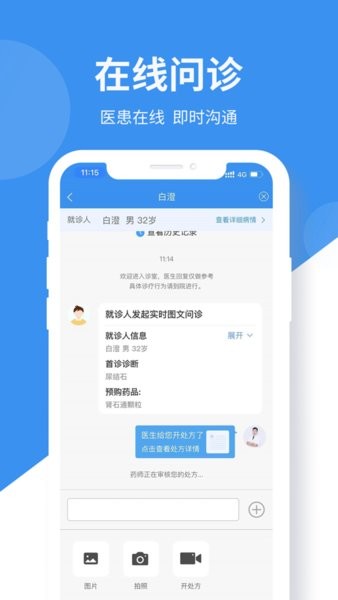 【在线咨询】医生可通过易复诊医生端与患者进行线上沟通,包括图文、语音、视频等多样的沟通方式。