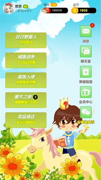 小学数学王是小学数学学习辅助软件,软件秉承寓学于玩的教育理念,将枯燥的数学练习题巧妙的融入到游戏中,极大提升学生的学习兴趣,变被动学为主动学,数学学习也可以变得事半功倍 。软件设计精美、功能强大、海量数据库囊括小学阶段人教版和北师大版数学所有知识点及相关题目详细解答,是优秀的提升数学成绩辅助软件。