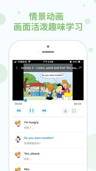 2、情景动画,画面活泼趣味学习;