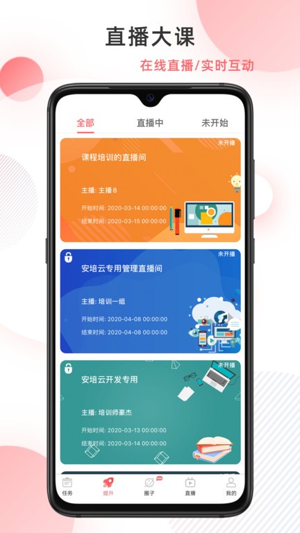 支持直播培训方式,应用“云技术”,开设“云课堂”,进行“云授课”,满足当前环境下企业培训需求,助力企业内训;