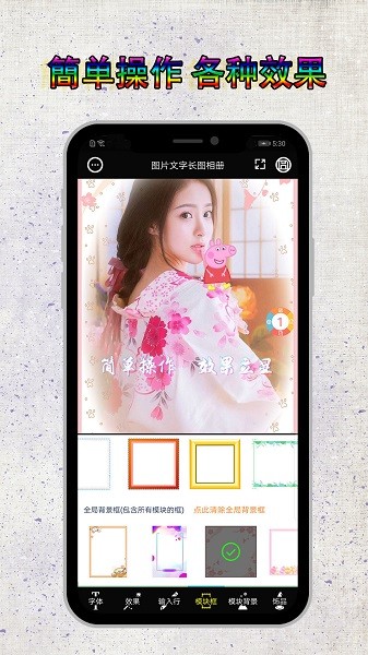 图片拼接支持渐变过渡,多种文字效果让你不论是纯文字书写还是用文字添加备注都能达到理想的效果展现,只需简单的操作,文字所能达到的效果都是其他文字软件无法比拟的。