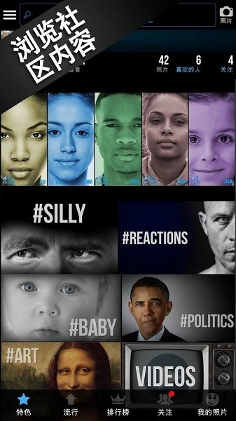 为亲朋好友快速打效果惊艳逼真的克隆照片。不需要专业技术,也不需要懂艺术。只需要一张照片。下载社区动画并粘贴到你的照片,也可以直接生成搞笑的面部表情。(好玩的根本停不下来。接下来,只需要挥洒灵感,打造原创动画和表情包。将你的大作导出为高清视频、图片、动态gif和动态facebook头像并与好友分享。你可以免费下载所有内容,导入自己的图片,随心修剪,导出并分享无限数量的mug,完全免广告。