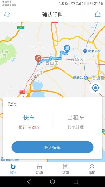 一键同时呼叫快车、出租车,分秒应答,快速接驾