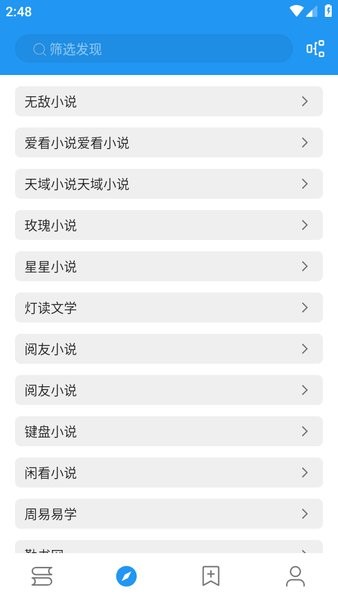 接单点击底部的第二个按钮,如图所示,这里是全部书源;