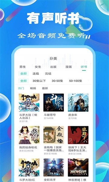 全民免费听书大全app是能够让用户们找到非常多种类的小说和听书资源的手机软件,在这里用户们能够快速的找到非常多种类的书籍和听书资源进行使用,帮助自己可以享受到各种书籍资源,超级的好用。