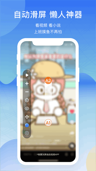 1、帮助广大安卓用户解放双手,实现短时间内快手连续点击加速;