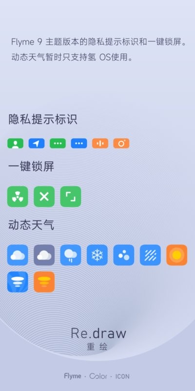 重绘图标软件是提供手机适配图标的主题美化工具,提供基础icons,自带应用设计的图标,还有隐私提示标识、一键锁屏、动态天气等图标设计,针对游戏适配的应用,图标会更有沉浸感,不分类别的应用会有统一的风格化适配,使用十分方便!