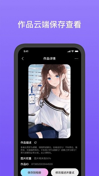 输入中文就能生成专业的二次元绘画作品!你只需要输入一个提示语――然后看着灵动壁纸在几秒钟内将你的想法变成现实!过程十分简单:仅需描述一下你想让灵动壁纸绘制的动漫效果――如“魔法少女”或“华丽水晶宫殿”――选择二次元;然后点击创作NoveAI精美画面!