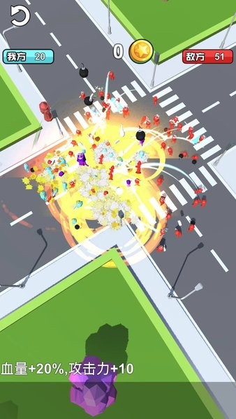 2.清新的画面,在大马路上开始对战,蓝色方和红色方分别率领一群小人开始战斗,这些小人可能还会拿着板凳或者板砖各种武器对战;