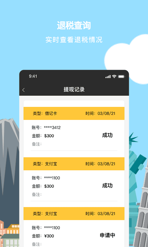 实时查看退税情况。