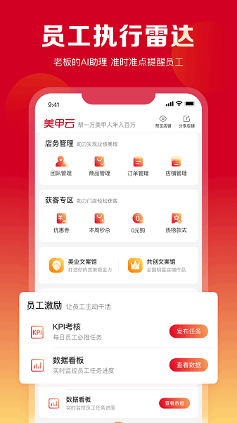 1、实时掌控门店业绩,检验员工执行计划,实现高效率的运营管理。