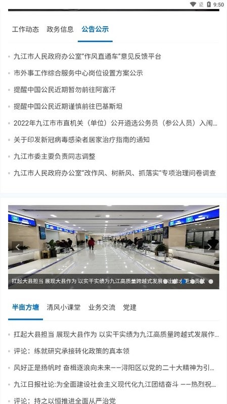 3、实时动态:借助该App,用户可以随时获取九江市政府最新政策、活动和重大事件等动态信息。