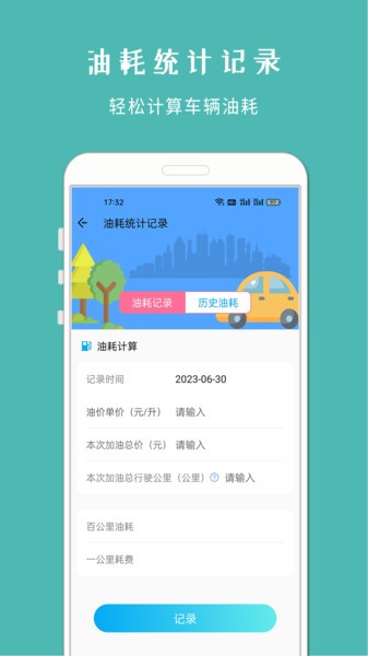 4、 油耗统计记录,轻松计算车辆油耗