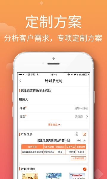 民生保险掌上民生app是一款专为民生保险公司保险营销活动服务的软件,为民生保险的营销团队提供电子化的服务。