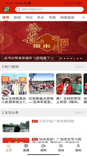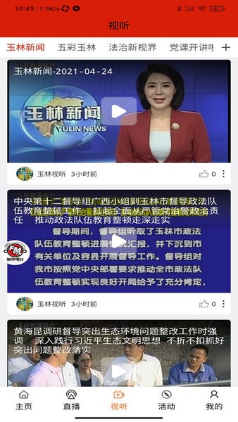3.用户可通过手机台客户端随时随地观看玉林电视台电视直播、精彩视频,了解玉林市最新动态;