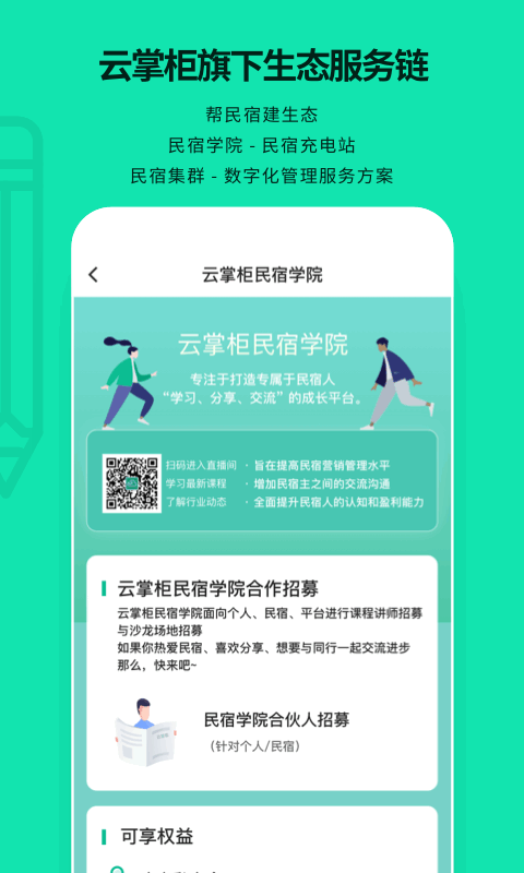 云掌柜作为住宿业数字化营销管家,提供专业化民宿管理工具与多维生态资源整合营销服务。专注于服务好每一位掌柜,持续给用户提供长期、稳定的服务,让天下没有难做的民宿生意。