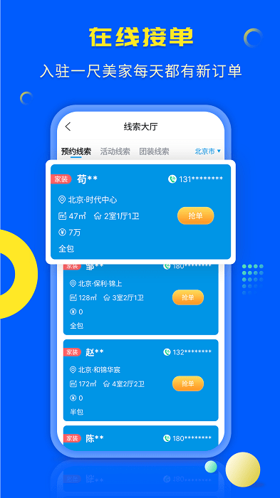 一尺美家app提供了多种便捷家装服务,不管是个人还是商户都可以登录使用。作为普通用户你可以在这里找到众多不同风格的装修模板,作为工作人员可以登录到平台中进行获客,从而完成接单。