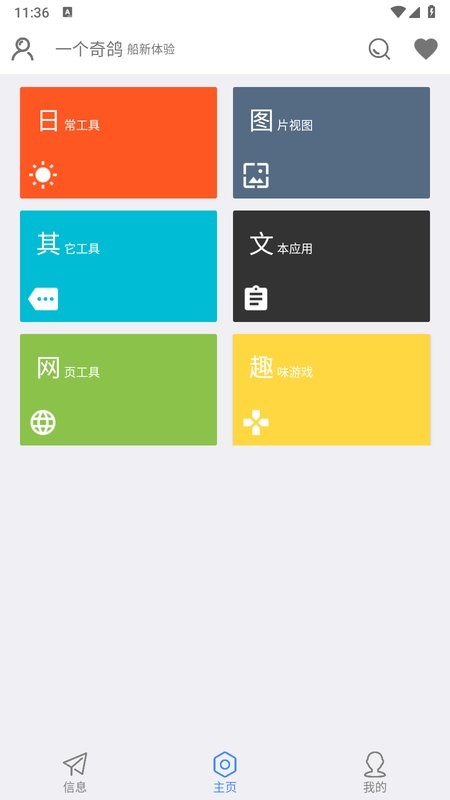 一个奇鸽船新体验是功能丰富的工具箱软件,拥有着各种各样不同类型的工具使用,包括日常工具、网页工具、图片视图、文本应用、其他工具、趣味游戏,还有丰富信息内容查看,可以在线搜索,支持一键分享应用、更多功能等你发现体验!