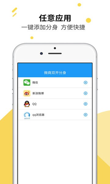 全球首创应用多开分身功能,更稳定的微信多开宝,完美支持微信多开、qq多开、派派多开、淘宝多开、闲鱼多开、游戏多开等绝大多数应用无限多开,依托独立内存管理机制,手机无限多开不卡顿。