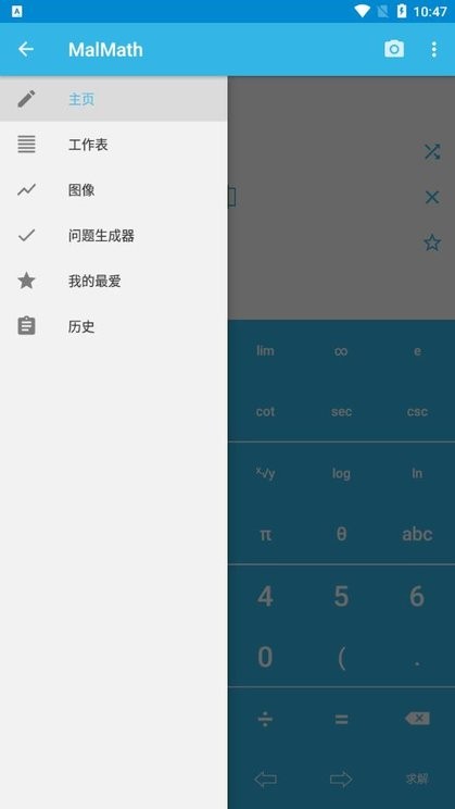 malmath高级版是提供数学计算服务的应用工具,具备强大的功能,支持嗲书、三角函数、极限、微分以及积分的表达计算,随你自由设置,在线选择编辑运行,还提供工作表、图像、收藏等服务,满足用户的需求,轻松解决相关的数学问题!