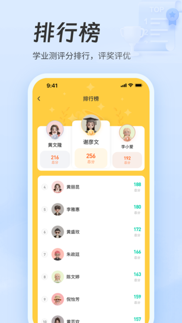 还可以获取学生的学习排行榜,了解学生的学习排名情况;