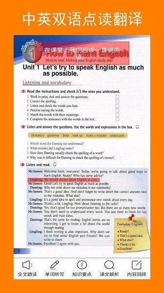 1、与课文内容同步,单词、句子点读、跟读,课外随时随地复习巩固;