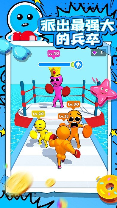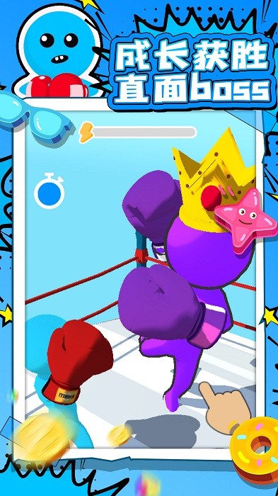 道路漫长,敌人阻挡重重。但是所有的阻碍只会让你变得更强!冲向你的敌人,拳拳到肉,看你的肌肉增长冲力。一路跑一路击倒对手,成长获胜直到关底面对boss之王...它是最强壮的敌人,只有打倒所有的挡路敌人才能最终有机会打败他。只有一击,你能把她的皇冠打下来么?