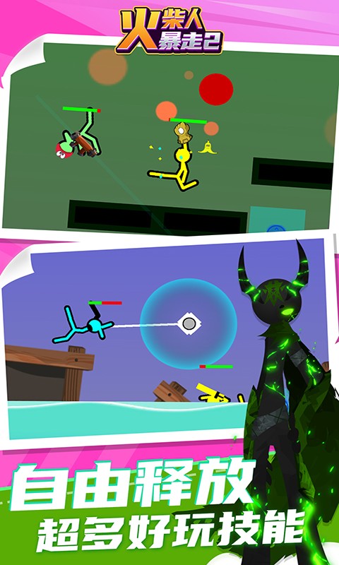 火柴人暴走2手游是火柴人类型的动作闯关冒险游戏,画面高清简约,场景丰富,关卡多种多样,难度不一,多种技能尽情释放,不同皮肤可以选购,还提供多种游戏模式挑战,玩法高度自由,操作简单,需要玩家控制火柴人击败更多的敌人!