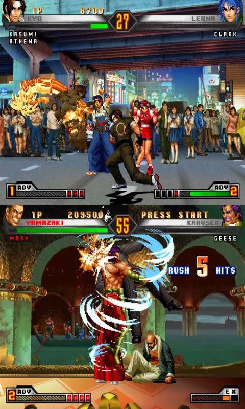 玩家可以使用4键操作,重温街机的感觉。也可以体验追加了[紧急回避]和[吹飞攻击]功能的全新6键操作。更可以设置sp按钮,一键使出必杀技,手残用户也可享受一击必杀的快感。