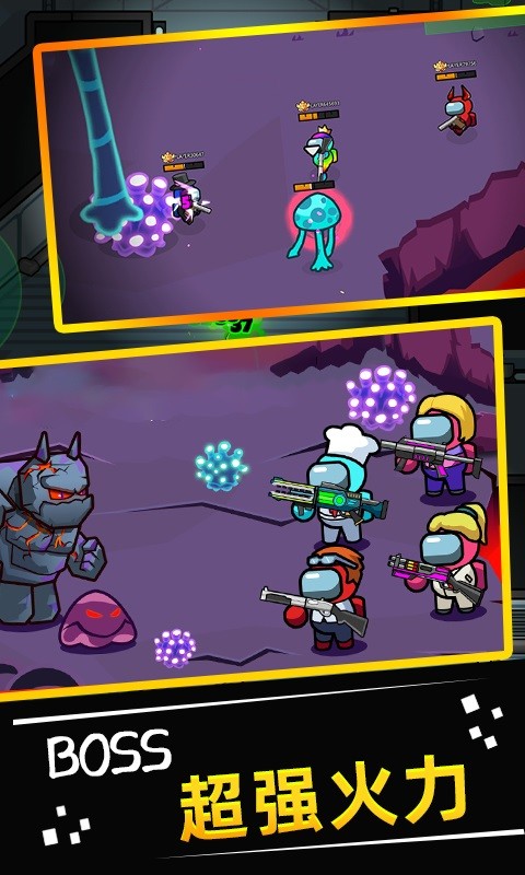 游戏的亮点还有很多:有强大的BOSS战、消灭叛乱船员的任务、飞船上的疯狂逃杀模式以及各种生存挑战。如果你喜欢策略和射击类的游戏,《勇士大乱斗》绝对值得一试。画面方面也很赞,采用了卡通风格,角色造型诙谐奇特,整体设定非常精美细致。我觉得这款游戏非常适合在闲暇时间玩一玩,随时随地都能体验一把紧张刺激的战斗乐趣!而且游戏场景非常多,每关的设计都不重复,能带来不同的挑战和新鲜感。