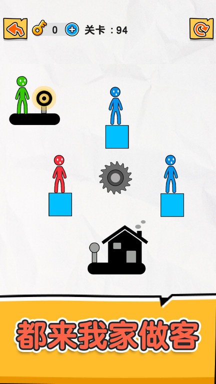 橡皮火柴人游戏这是一款休闲益智游戏,动动脑筋拿到你想要的物品和宝藏。每个级别都是一个不同的谜题,你的任务是得到你想要的物品。每次通关时,都会让你嘴唇上出现微笑。各种谜题和困难的测试将挑战你的头脑。训练你的逻辑、记忆力、智力、解决问题的能力和创造力。认为你足够聪明来解决所有这些棘手的难题?