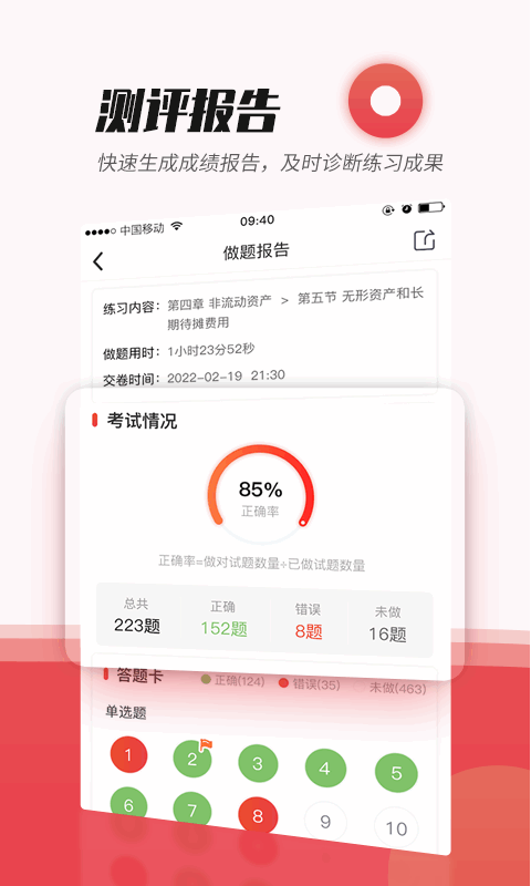 实时提供做题报告:分析弱项,查缺补漏,智能评估掌握水平。