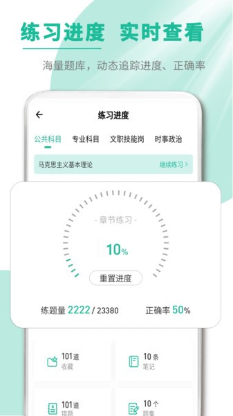 3、练习进度,练习题给出之后就要花时间进行做题,动态的进度会整个过程都做追踪的。
