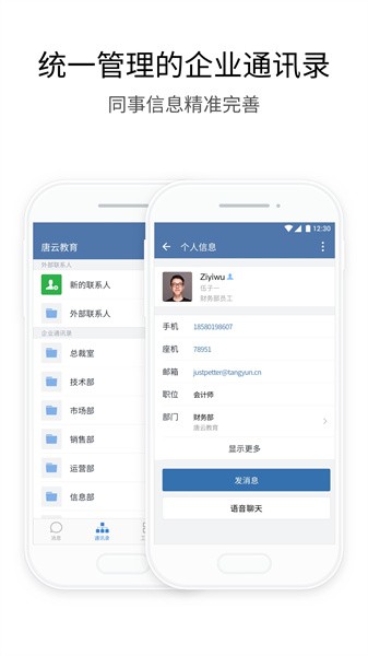 2、支持批量导入企业通讯录并统一管理,找同事更准确方便。