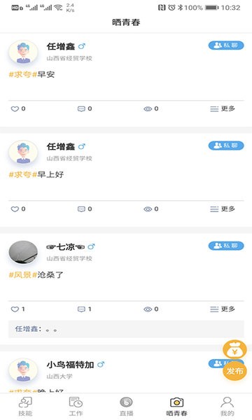 可以在这里发布自己的动态,晒美食、晒颜值、晒宠物都可以;
