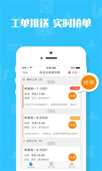 报修工单直接推送给维修师傅,维修师傅通过APP抢单不错过任何一条工单信息!