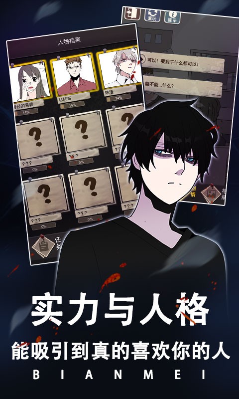 《整容游戏》同名漫画改编的一款可以“玩”的漫画游戏。在这个看脸时代的社会,变美的消息无孔不入地渗透到人们的生活中,游戏中BGB时尚媒体公司的一个长相普通的职场女青年――易蓉,因为容貌问题,即使业绩非常优秀也无法得到领导的赏识,毕竟这是一个看脸时代。