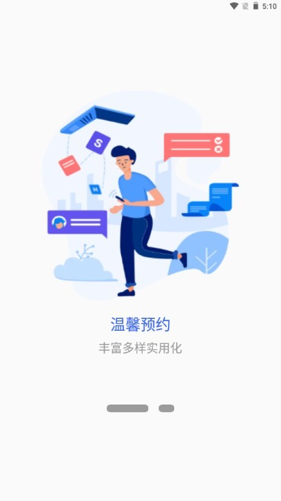 2、登录后,显示如下界面,说明登录成功,即可使用APP。默认在“首页”页面,提供常用服务及各类通知。