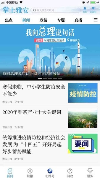 掌上雅安客户端拥有丰富的政务资讯可以随时阅读,软件之中还有许多的时政新闻和对时政的解读,帮助用户更加轻松的理解政府的政策,还有许多的社会焦点新闻可以随时关注。
