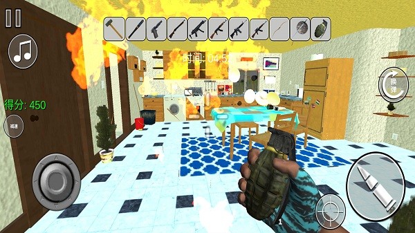 3、大量的武器,你可以随意的选择武器去摧毁那些房子;
