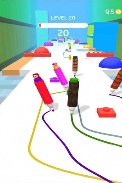 一款玩法非常魔性轻松的敏捷类闯关冒险游戏,不断前行的彩笔需要在你的指挥下才能避开各种危机,灵性舞动的彩笔会以灵性的动作进行前行,跨越滚动的天空一个个障碍不断向着终点冲刺。