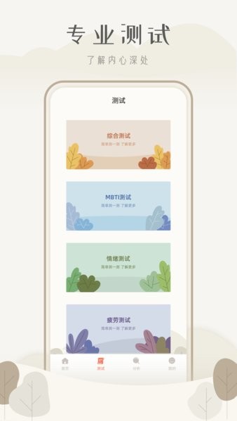 不过,虽然这个App看起来很专业,我还是有点担心测试结果是否准确。毕竟每个人的内心世界都很复杂,不能完全依赖测试来判断自己。总的来说,我觉得这个App更适合用来辅助了解自己,而不是当作专业的心理诊断工具。如果你只是想找个方式放松心情、探索自己的话,用一用也无妨!